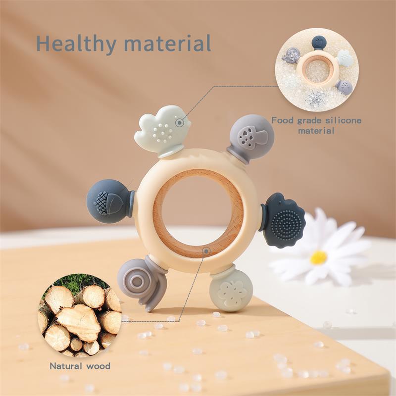 - Our wooden baby food grade silicone multidirectional bite teether provides both tactile stimulation and relief from sore gums during the early stages of tooth development