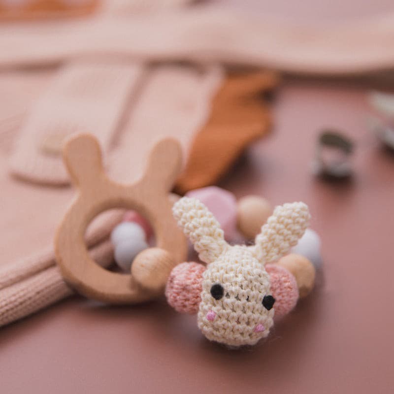 The handmade crochet wooden rabbit teether is designed with great attention to detail, each smooth, polished and burr-free piece. They are made from high quality natural beech wood which is totally safe for your babies.